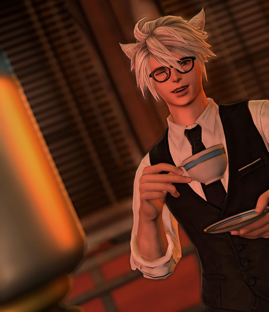 Ren hails from the bustling city of Kugane. Growing up in the poorer parts of the city he was a bit of an outcast as veiras weren't the most common around. But that lead him into the path of medicine, he learned both the ways of eastern medicine and then western as he came to Eorzea carrying the title of doctor proudly. Bar tending started as a past time, but now turned into a secondary career, working alongside his brother to keep the bars and kitchen in tip top shape.