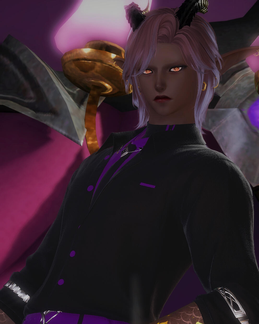 Asbel is a gold metallic Dragon who was born 500 years ago in the Dravanian Forelands within a neutral brood of dragons that wanted nothing to do with his Grandsire's war against Ishgard or mortals. 400 years ago, after an attack on his nest that killed six of his siblings, Asbel and his Eldest sister fled to Ishgard, which had forced him to hide his scales for five centuries. Acting now as the leader of a hidden underground hideout in the underbelly of Ishgard, Asbel has become known as a well-established assassin/ contractor among those who have sought him out in his ever-growing network. However, if you do not pay the price, he will take what you value most as your source of payment, especially if you double-cross him. Going from bound to free, Asbel is one of the acting Managers of the venues and can be seen wandering about either with a camera in hand or acting as a host when he is not needed at the front desk. However, his role is more community-involved, which he is no stranger to when it comes to networking. If he comes into your company, this dragon may be more than meets the eye under his mysterious demeanor.